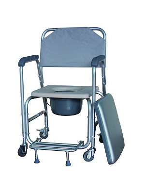 型號:A-ZBY–E 名稱:座便器(四輪、帶腳踏) 規格:64*56*93cm 用途:無法蹲位排泄患者入廁使用